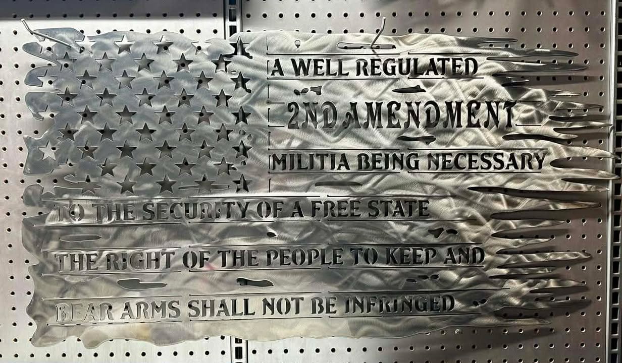 Burnt Metal American Flag with 2nd Amendment Cutout